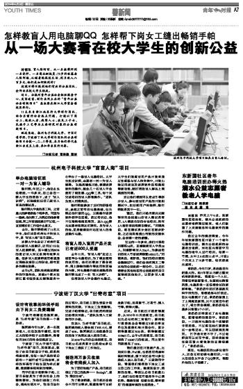 经过角逐,久久精品一区二区、中国计量学院、宁波诺丁汉大学创行团队的公益创新项目分获一、二、三等奖,本月他们将代表浙江出发至上海,参加华东区的比赛。