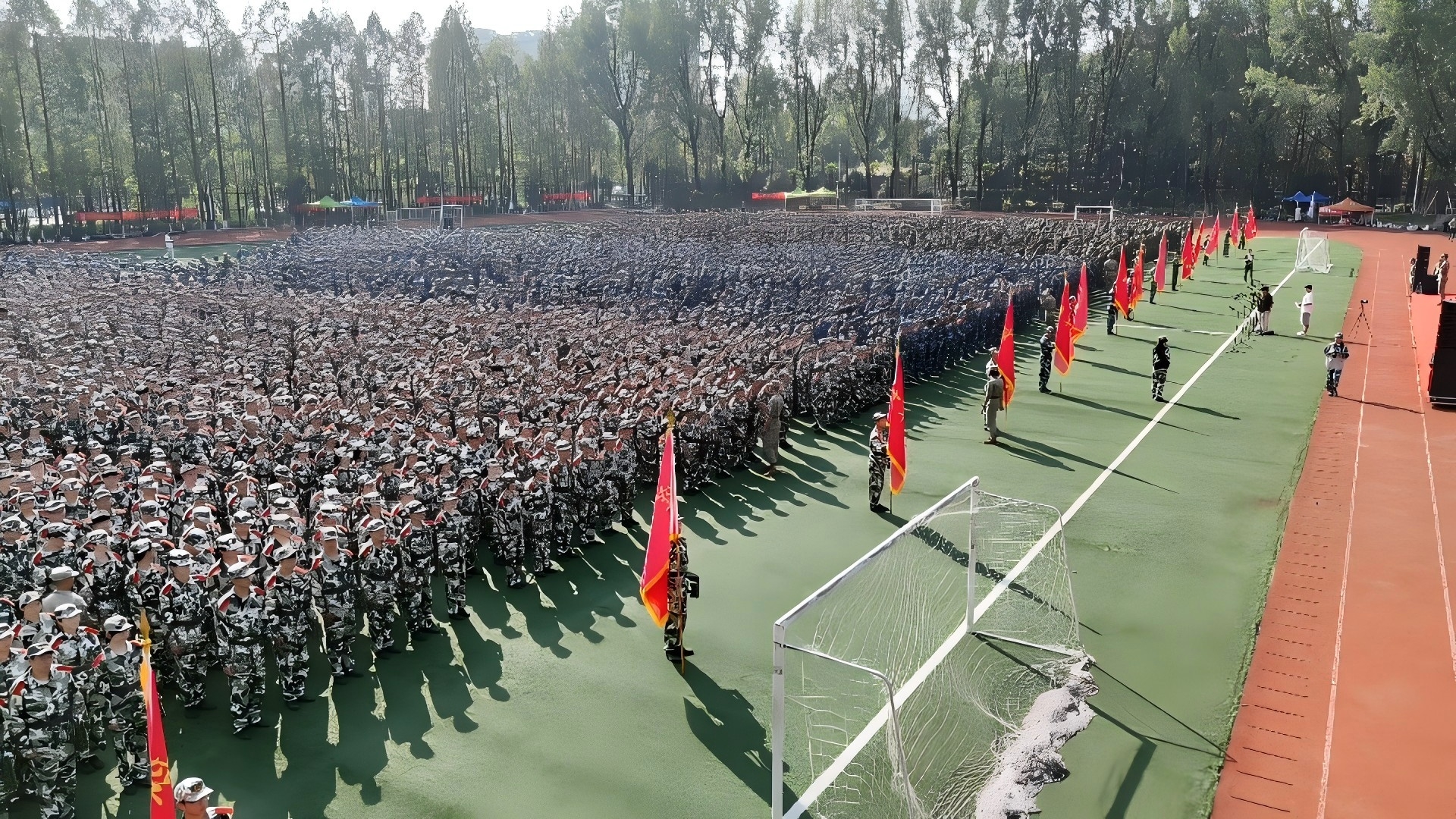 全体师生齐声高唱《强军战歌》,激昂旋律中,2025级学子正式踏上淬火成钢的成长征程。