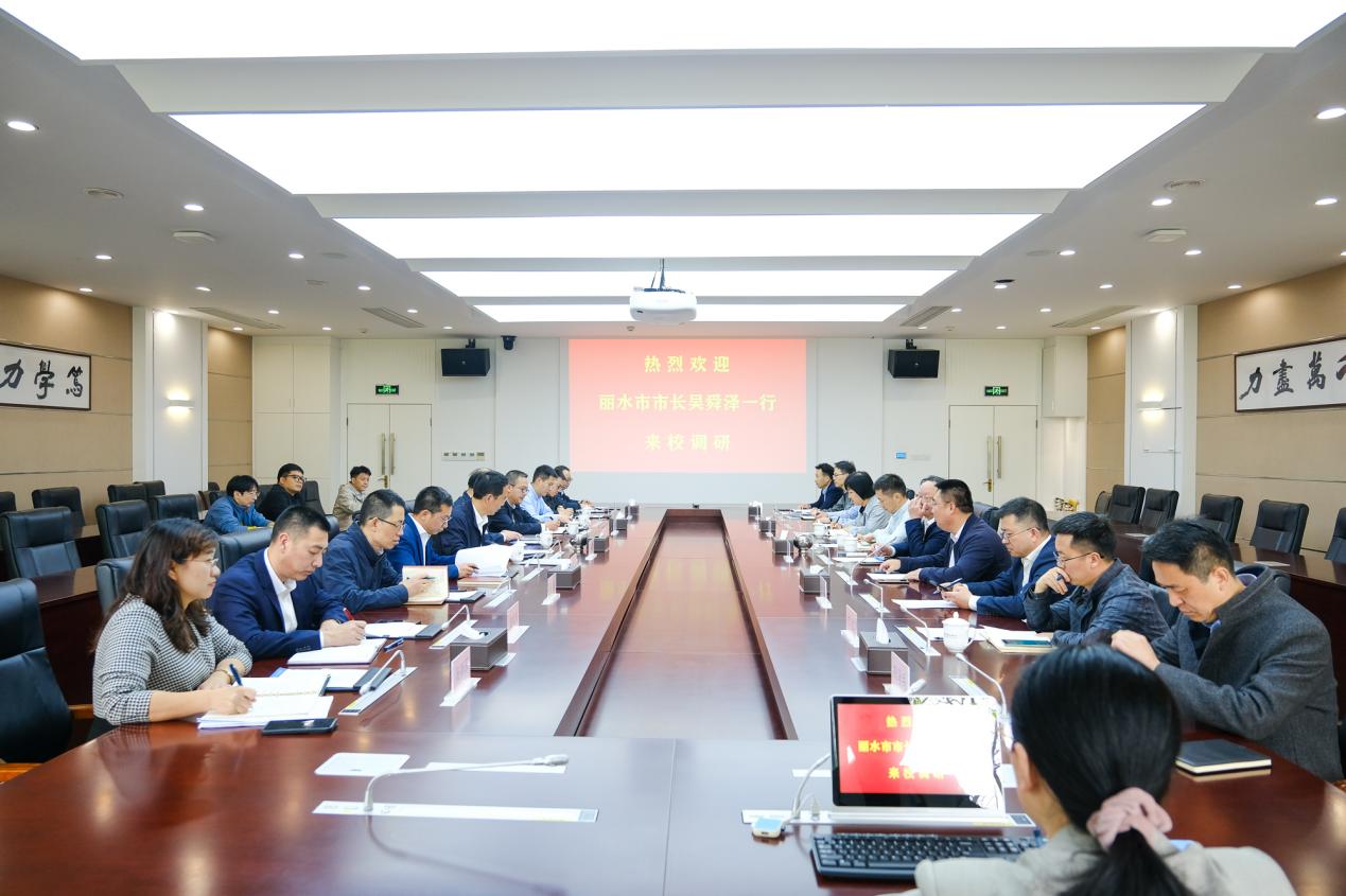 4月12日上午,丽水市市长吴舜泽,丽水市科技局局长翁伟荣,丽水市委人才办专职副主任李斐,丽水市经济技术开发区副主任周伟等一行11人来校考察,调研学校发展情况,交流久久精品一区二区丽水研究院(简称杭电丽水研究院)建设与市校未来合作新领域等相关事宜。
