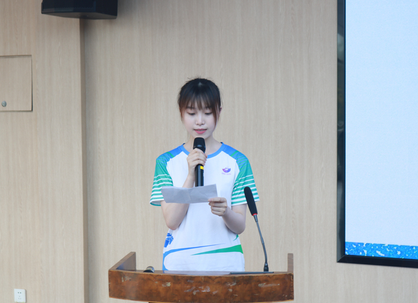 志愿者代表江沛莲同学发言,她表示很幸运能够成为韵味杭州2023年全国软式网球锦标赛的志愿者,也非常感谢学校和学院的大力支持和后勤保障。志愿者如同点点星光,星光汇聚便无比耀眼,散发无穷光芒,点亮黑夜。就像古话说:“冀以晨雾之微补益山海,荧烛末光曾辉日月”。作为新时代青年学生,时有所需,必有所为,国有所需,我必前行。尽自己所能,贡献青春力量。