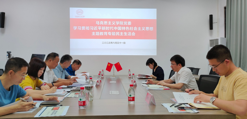 8月31日,马克思主义学院在九教132会议室召开学习贯彻习近平新时代中国特色社会主义思想主题教育专题民主生活会。校党委副书记戚明钧到会指导并作点评。会议由学院党委书记刘孝菊主持,全体党政领导班子成员参加会议。