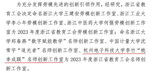 近日,2023年度浙江省教育工会劳模创新工作室和名师创新工作室评选结果公布,我校电子信息学院(集成电路科学与工程学院)李竹领衔的“桃李成蹊”名师创新工作室获得正式命名,成功入选首批浙江省教育工会名师创新工作室,全省仅有三家工作室获此殊荣。