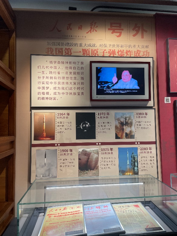 四、“科学巨星,卓越贡献”。这一展厅讲述了钱学森为中国航天事业、国防科技事业做出的伟大贡献,他将个人的爱国之心、报国之志融入党和国家的伟大事业之中,将自己的科学报国梦融入国家富强、民族振兴、人民幸福的中国梦之中,向祖国和人民递交了一份爱国科学家的时代答卷。