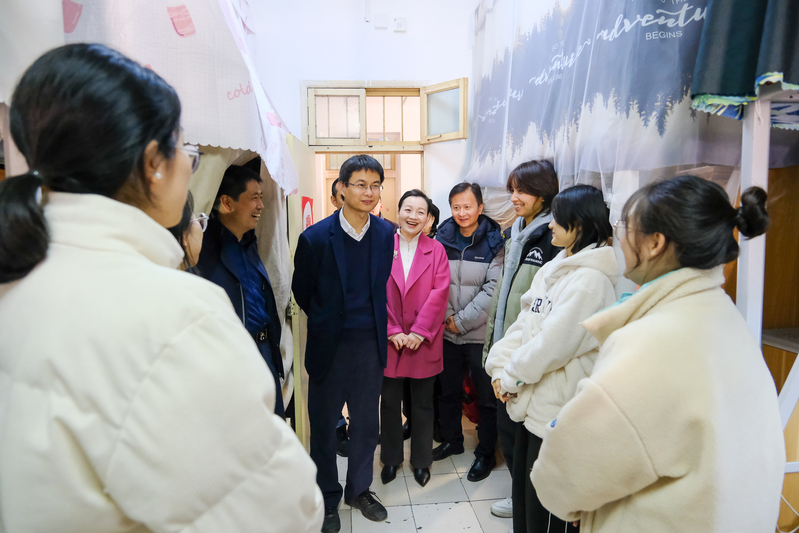 吴卿首先深入学生宿舍走访并与学生“拉家常、聊近况”,为学生送去关心、问候。吴卿查看了同学们的住宿环境,详细询问了同学们近期的学习与生活情况,并认真听取同学们的心声。