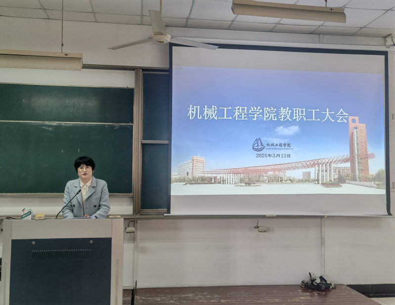 3月13日下午在6教中301教室,机械工程学院召开了新学期教职工大会。学院党政领导、全体教职员工参加会议。大会由学院党委书记王胡英主持。