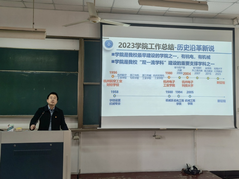 院长倪敬对学院2023年工作做了总结并指出不足之处。他指出学院目前发展缺大项目洗礼、缺大专家指导、缺大平台支撑、缺大成果产出。接着,他对学院2024年工作规划进行了介绍,从各研究所的发展方向,到专业建设与人才培养,从科学研究到社会服务等等各个方面。而后,为学院2024年制定了科研与研究生、本科教学、国际合作与学科竞赛、科教平台方面的十大工作目标。最后,他对开学初的重要工作做了通知。