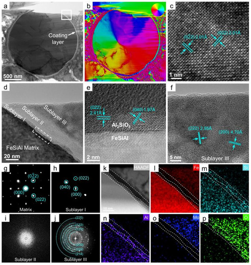 在该研究中,研究团队制备出一种具有高磁导率频率稳定性的软磁复合材料。这种复合材料由具有磁涡旋结构的超细FeSiAl磁粉通过冷烧结工艺制备,磁粉之间磁绝缘,并且通过Al2SiO5/SiO2/Fe2(MoO4)3界面层共价结合。这种独特的磁结构和界面结构,可以使复合材料即使在1GHz仍然能够保持13的磁导率,105 Am2/kg的饱和磁化强度以及48A/m的低矫顽力。通过洛伦兹透射电镜和微磁学模拟进一步证明是复合材料中的均匀分布的磁涡旋结构诱导了这些优异的磁性能。同时,由于颗粒间绝缘层的外延生长,复合材料的抗压强度也提高到337.1MPa。该工作首次报道了三维磁涡旋结构的高频磁性能,满足了集成电感对高频软磁材料的迫切需求。
