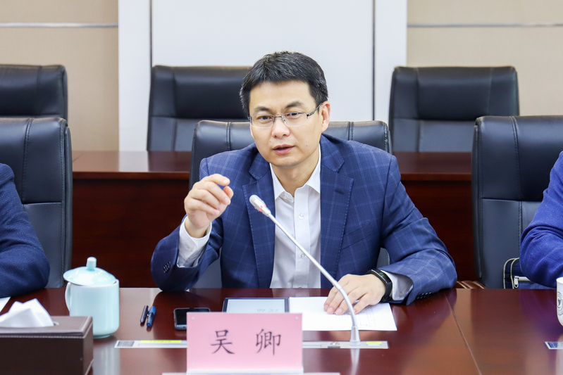 吴卿对倪沪平书记一行的到来表示欢迎。他表示,嘉兴南湖学院是一所特色鲜明的高校,两校在学科领域和办学特色上有很强的专业亲缘性和很大的合作潜力。他强调,积极进行科教融汇、产教融合不仅是响应国家教育科技人才一体化发展的政策要求,更是推动学校高质量发展的关键所在,加强交流合作有助于双方共同提升办学水平和社会影响力。