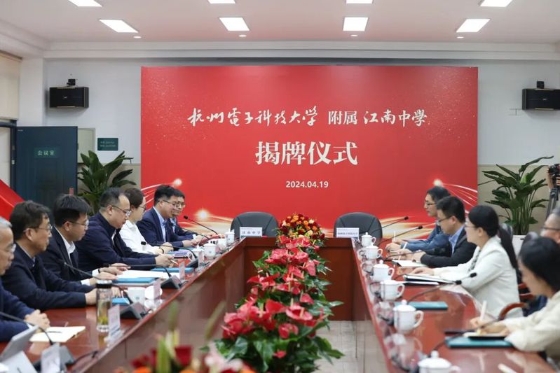 仪式上,钱波与徐松泉为附属中学揭牌,李文钧与周朝勇签订合作共建协议并为杭电科创班揭牌。