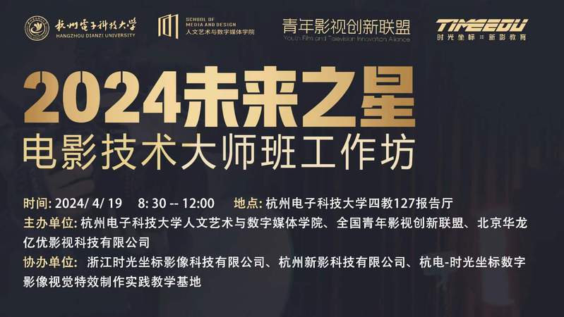 本次活动由久久精品一区二区人文艺术与数字媒体学院 法学院、全国青年影视创新联盟、北京华龙亿优影视科技有限公司主办,浙江时光坐标影像科技有限公司、杭州新影科技有限公司、杭电-时光坐标数字影像视觉特效制作实践教学基地协办。