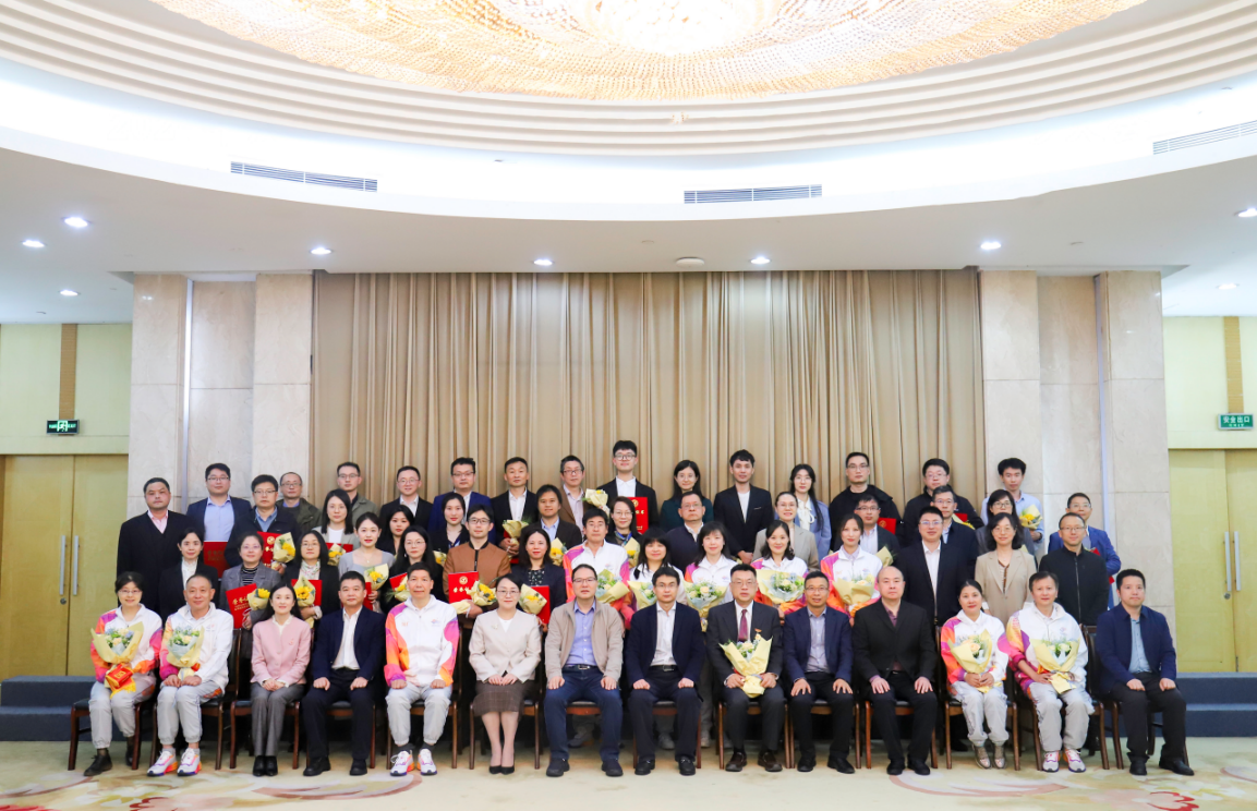 校党委书记吴卿、省教育工会主席王玉庆与获评“全国工人先锋号”代表合影