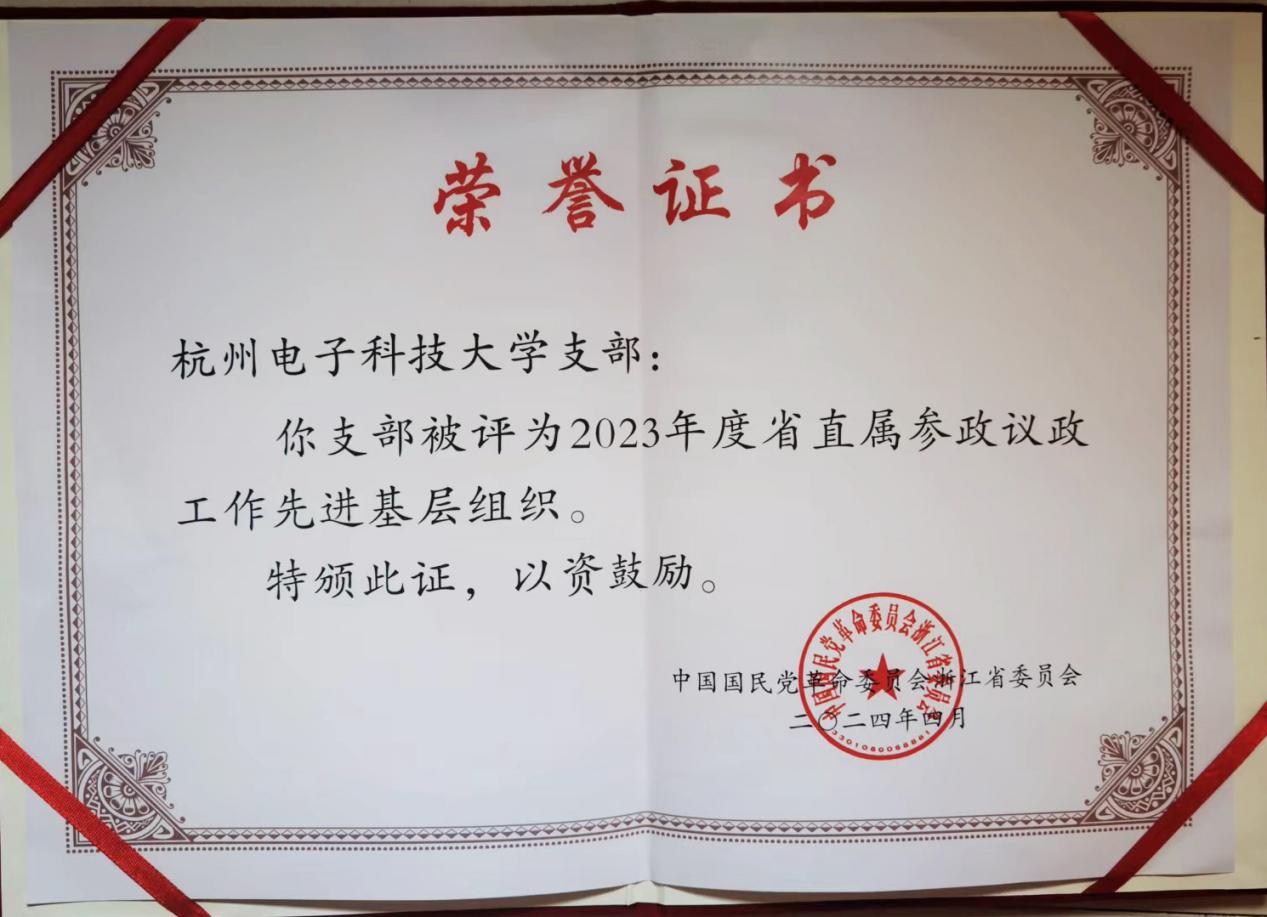 民革久久精品一区二区支部在2023年度民革浙江省委会直属工作委员会“双争评比”中获奖