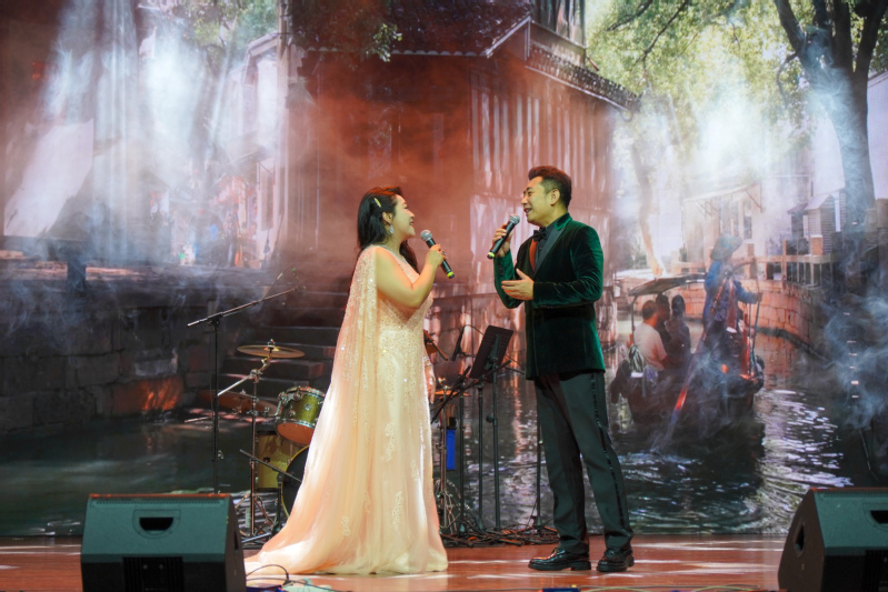 决赛特邀薛雷、卢思嘉、严靓、方嘉杰四位专家莅临点评。薛雷和卢思嘉在现场为大家带来由浙江音乐学院青年作曲家蒋骁然作曲,洪艳老师作词的讲述宋韵文化描绘美丽江南的歌曲《阡陌江南》。