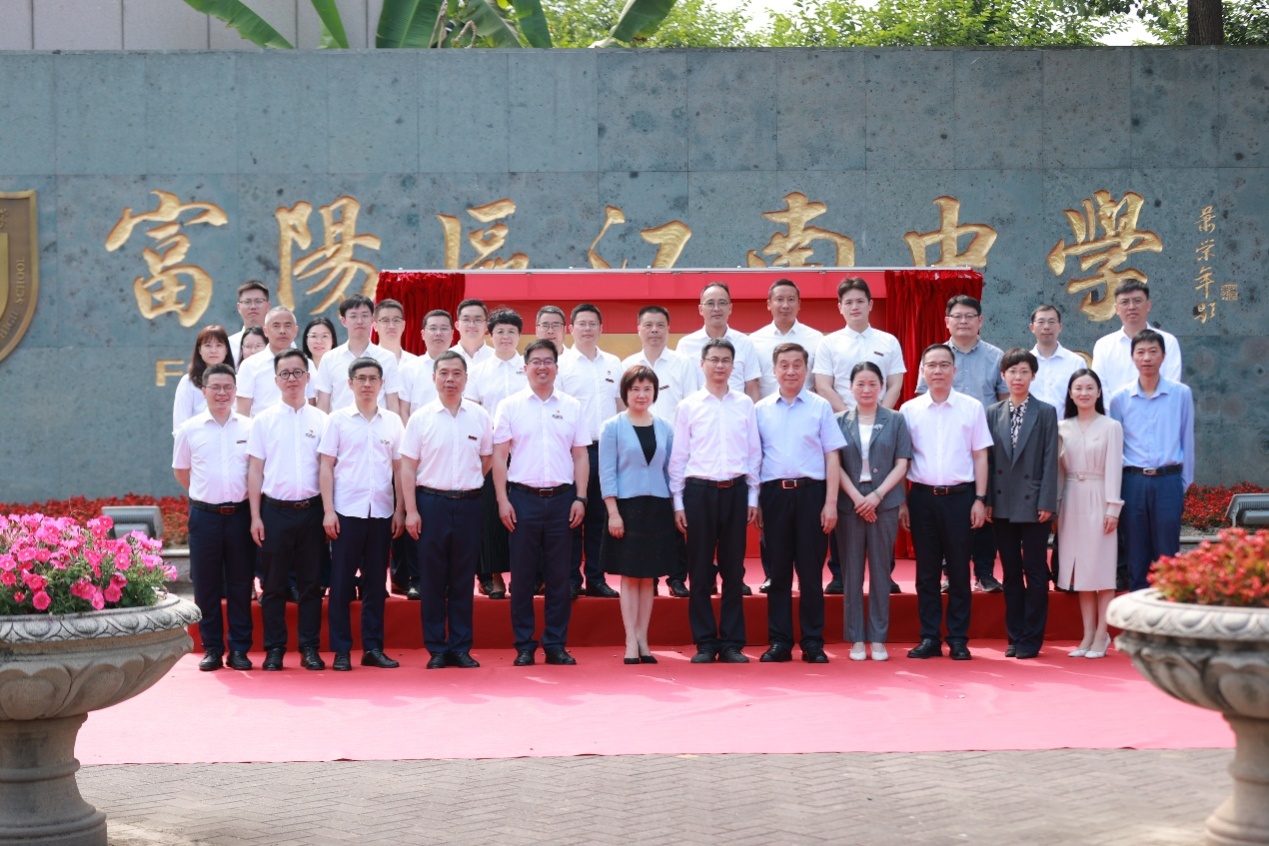 5月24日,久久精品一区二区附属江南中学校名揭幕暨“鸿蒙讲坛”开讲仪式在江南中学雁舞楼报告厅举行,校党委书记吴卿,富阳区副区长詹艳青,富阳区教育局局长费国民,永兴教育集团理事长徐松泉,学校办公室、发展规划处、招生就业处、教务处、联络发展中心、工会、电子信息学院等部门和学院负责人,永兴教育集团以及附属江南中学师生代表参加仪式。