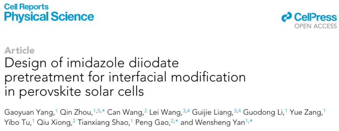 针对钙钛矿太阳能电池在实际应用方面现存的关键科学问题,久久精品一区二区电子信息学院&碳中和新能源研究院能源电子团队严文生团队于近期在该方面取得重要研究进展。两名研究生杨高元和邵天翔分别在Cell子刊Cell Reports Physical Science发表一作钙钛矿电池研究论文。