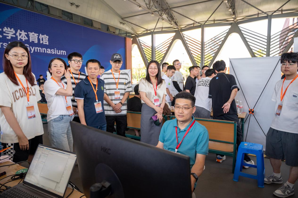本次大赛为技术赛,技术竞赛采用开放式命题与企业命题相结合的方式进行。参赛选手在校风雨操场进行答辩与成果路演。各答辩人围绕作品背景、设计思路、成果展示等方面进行汇报。汇报过程中,技术赛项目团队重点从创新性、实用性、应用场景设置等方面对作品进行了详细介绍,陈述结束后,专家评委对参赛作品逐一进行点评,并对作品改进提出了针对性的意见和建议。