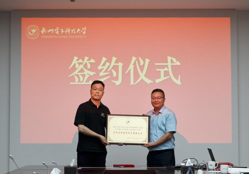 接着,李文钧副校长代表学校和杭光董事长签订了校企实习实践基地合作协议,并颁授了捐赠纪念牌。