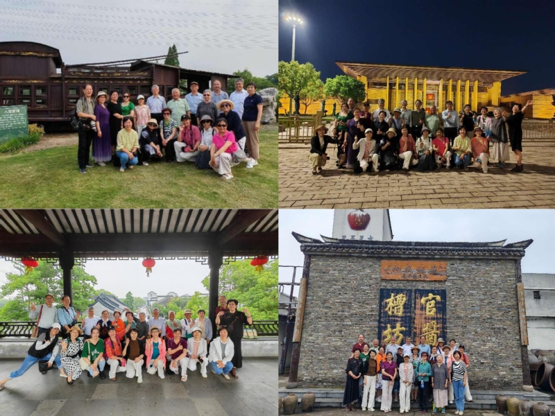 此外,老教授们还参观了胥山遗址公园、黄亚洲影视文学园、南湖革命纪念馆、海盐沈荡酿造有限公司、月河老街以及西塘古镇等地,深入了解了嘉兴的历史文化和社会发展。