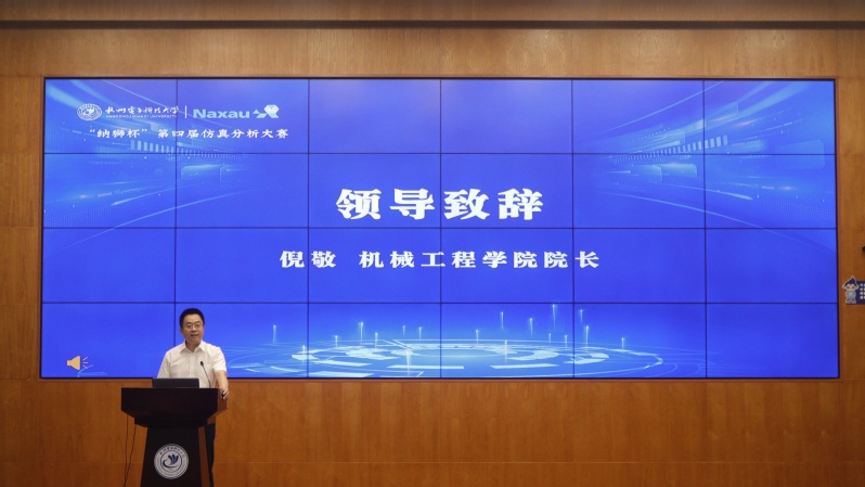 机械工程学院院长倪敬为比赛致辞。他系统讲解了机械工程学院的创新实践系列课程的发展规划。仿真分析大赛是专门为机械工程学院全体大一新生举办的专属竞赛,是面向海陆空天高端装备与智能制造的创新实践课程专属竞赛,是学院在国内首创的六大创新实践课程课内专属竞赛,也是对接省级、国家级学科竞赛的预备赛。大赛可以为同学们后续参加智能精密装配大赛、机械设计大赛、挑战杯竞赛、互联网+竞赛等比赛提供经验和支持。