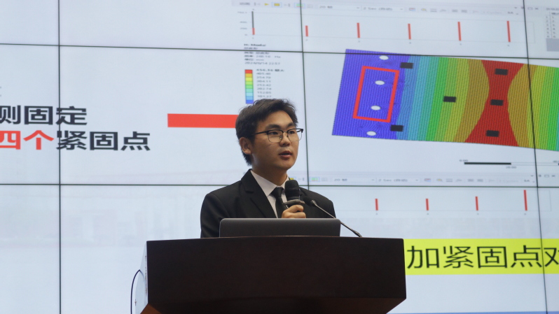 本次比赛共有15组选手在168件初赛作品中脱颖而出,选手们通过PPT展示自己的作品,作品主要涵盖激波管膜破裂行为模拟、印刷电路板模态分析、飞机起落架强度仿真分析等海陆空天装备的零部件仿真分析,将学科内容与实践应用进行了深度结合。