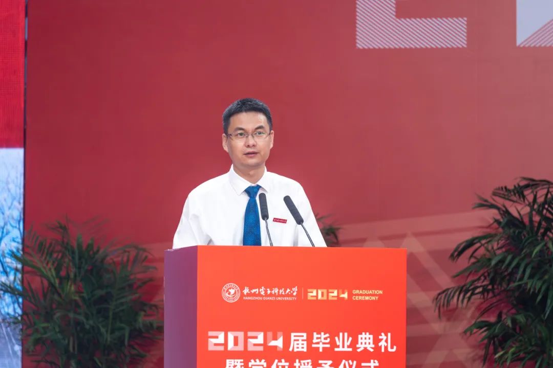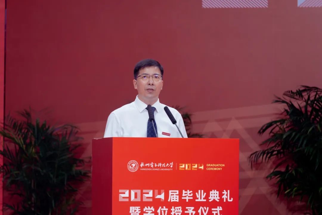 他嘱托毕业生们,要心怀“国之大者”,向内扎根、做不倦求知的奋进者;向上攀登,做引领科技的弄潮儿;向外生长,做拥抱世界的新青年。希望毕业生们能以“国家大事 千万尽力”的杭电情怀更好地读懂中国,以“美美与共 天下大同”的大国智慧去拥抱世界,秉承“笃学力行、守正求新”校训精神,向内扎根、向上攀登,向外生长,与时代同行、与祖国共进,到祖国最需要的地方建功立业,在科技自立自强中书写不负盛世、不负韶华的精彩人生!