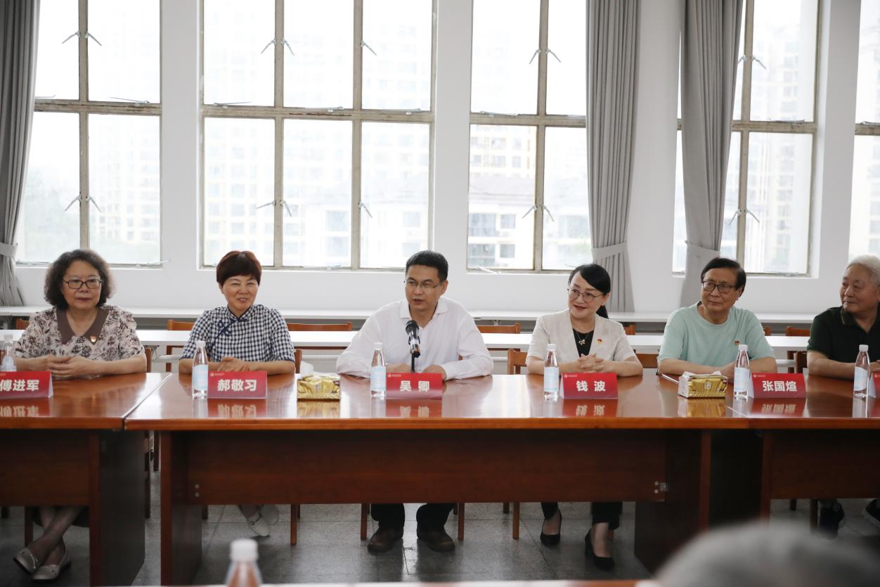 校党委书记吴卿为离退休老领导、老党员、优秀党务工作代表颁赠鲜花并发表重要讲话。吴卿说,今天是建党103周年的光辉纪念日,首先代表学校向大家表示亲切问候,感谢大家为学校事业发展作出的贡献并热烈祝贺获奖代表。老领导、老党员和离退休党务骨干既是峥嵘岁月的见证者,又是奋斗岁月的参与者。希望大家深入学习贯彻习近平新时代中国特色社会主义思想,大力弘扬伟大建党精神,结合当前正在开展的党纪学习教育,传承红色基因,牢记初心使命,强化宗旨意识,厚植为民情怀,永远跟党走,奋进新征程。