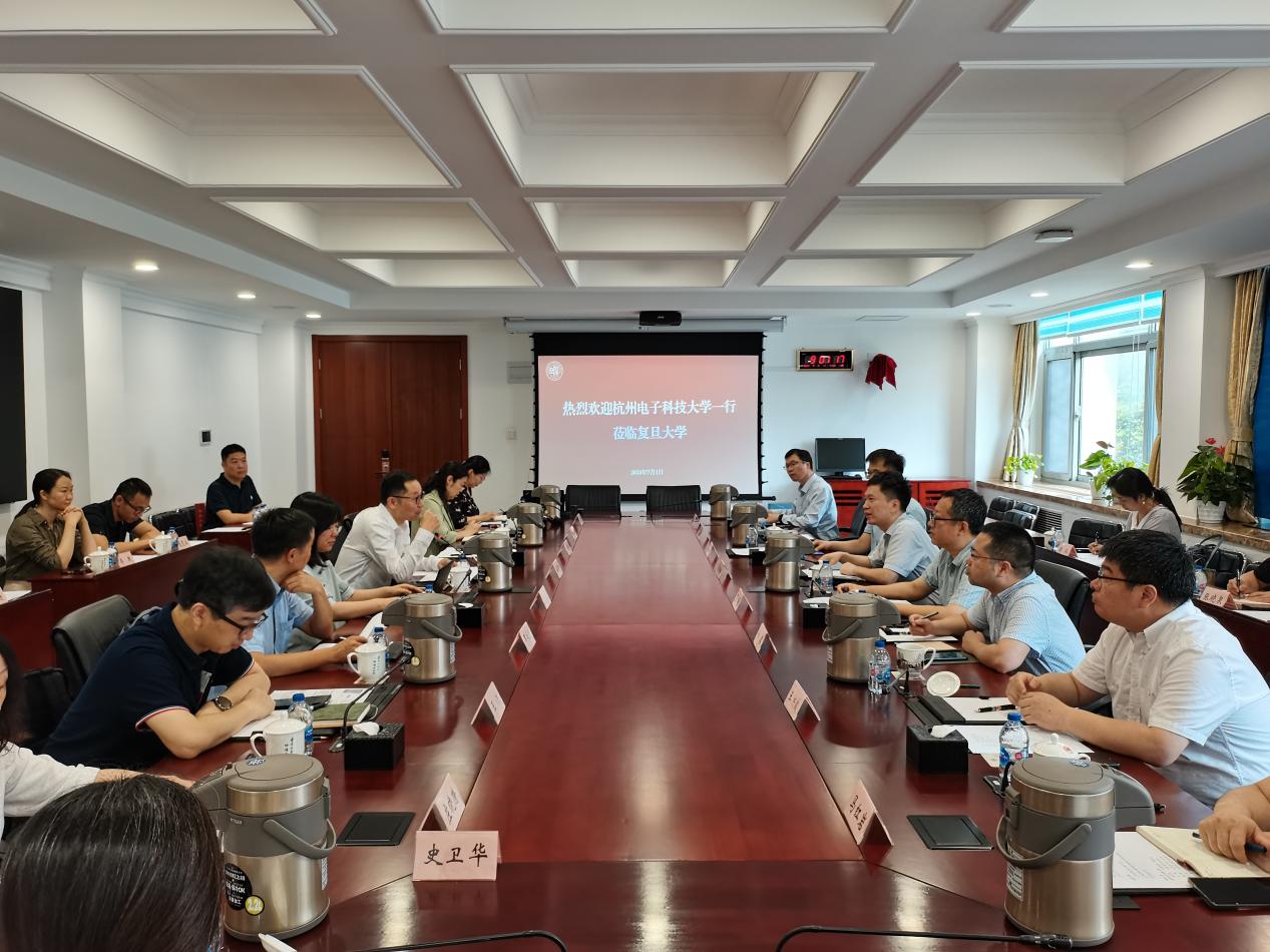 在复旦大学调研期间,复旦大学副校长姜育刚热情接待了颜成钢一行,学校发规处、人事处、科研处、先研院、产学研中心、国资实验处、图书馆、信息中心、采购中心、前沿技术中心等部门负责人参加了调研。姜育刚代表复旦大学对颜成钢一行表示欢迎。复旦大学相关部门负责人分别围绕人才引进、博士后管理、信息化建设、学科建设、科研管理等方面的经验和做法,就各自部门分管的相关工作情况作了详细介绍,双方对口部门分别围绕各自关心的话题进行了深入探讨和交流。