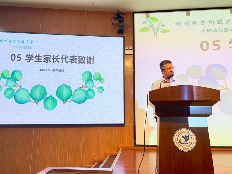 来自电子信息学院的2024年度小树苗公益课堂学生负责人张金正同学介绍了小树苗公益课堂的发展历程和本次小树苗公益课堂的筹备情况、志愿者招募情况、小朋友报名情况及授课计划。他表示,2013年小树苗从后勤职工子女学校开始,到下沙高校的青协团队加入、到文小二工作室的承办;从一对一的课后辅导到课堂辅导、到2020年第一次暑期班;从服务后勤、保卫处子女扩展到了全校教职工子女,离不开后勤服务中心各部门和学校相关部门的关心支持,而工作团队和志愿者们也不负所托,不断丰富课程内容,不断完善规章制度、加强安全教育,更是抱着一颗“感恩的心”来陪伴小朋友们。来自机械工程学院何瑜鑫作为志愿者代表发言。他认为,小树苗一次支教活动,大学生通过在对青少年儿童的寓教于乐的教育中寻找到奉献社会的乐趣,同时也是传承好尊老爱幼的中华优秀传统美德的接力棒。作为小树苗志愿者,不仅肩负着一份特殊的责任和使命,更是爱心的传递和延续。