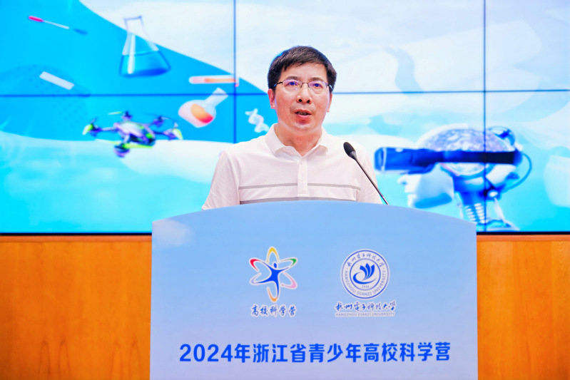 开营仪式上,戚明钧向主办方浙江省科学技术协会、浙江省教育厅表示感谢,向参加此次高校科学营的师生表示热烈欢迎。他指出,党的二十届三中全会要求“必须深入实施科教兴国战略、人才强国战略、创新驱动发展战略,统筹推进教育科技人才体制机制一体改革。”青少年科技创新人才培养是教育、科技、人才工作的基础性工程,直接影响到国家综合实力的提升,影响着强国建设和民族复兴。杭电将充分践行“科技梦·青春梦·中国梦”的科学营主题,以开放包容的姿态向同学们展示杭电前沿科技、科学课程和赋能实践。他期望同学们通过参加科学营的系列活动,在心中埋下崇尚科学的种子,并不断努力奋斗,使之成长为参天大树。