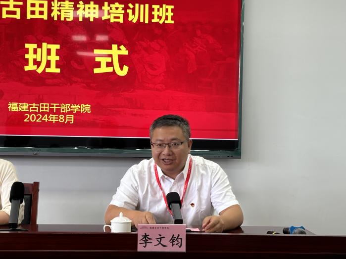 开班仪式上,李文钧对福建古田干部学院的精心安排表示由衷感谢。他指出,近年来学校党委高度重视干部教育培养,连续多年组织领导干部赴红色教育基地开展党性教育专题培训,重温革命历史,感悟革命传统。他对广大学员提出三点要求:一是要强化理论学习,提高政治素养,用习近平新时代中国特色社会主义思想武装头脑;二是要勇于创新实践,提升职业素养,努力学习运用党的创新理论,高效转化学习成果,创造性开展工作,为高水平大学建设贡献自己的力量;三是要加强自我约束,严守党规党纪,要时刻保持反躬自省的自觉、如临如履的谨慎、严管严治的担当,共同营造风清气正的良好政治风气。