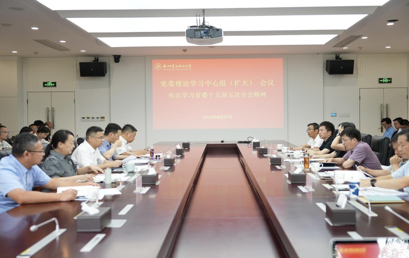 会议指出,省委十五届五次全会是在全省上下深入学习贯彻党的二十届三中全会精神和习近平总书记考察浙江一周年重要节点召开的一次十分重要的会议,省委书记易炼红所作的报告和审议通过的《中共浙江省委关于全面学习贯彻党的二十届三中全会精神,进一步全面深化改革,为在奋进中国式现代化新征程上勇当先行者、谱写新篇章注入强劲动力的实施意见》,站位高远、主旨鲜明、催人奋进,是党的二十届三中全会精神在浙江落地的有力回答,将指引我们开启改革开放先行地继续走在前列的省域新实践。我们要把学习宣传贯彻省委十五届五次全会精神作为当前和今后一个时期的重要政治任务,切实把思想和行动迅速统一到全会决策部署上来,进一步增强使命感责任感紧迫感,加快高水平大学建设,为浙江勇当先行者、谱写新篇章作出新贡献。