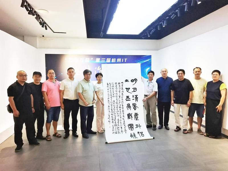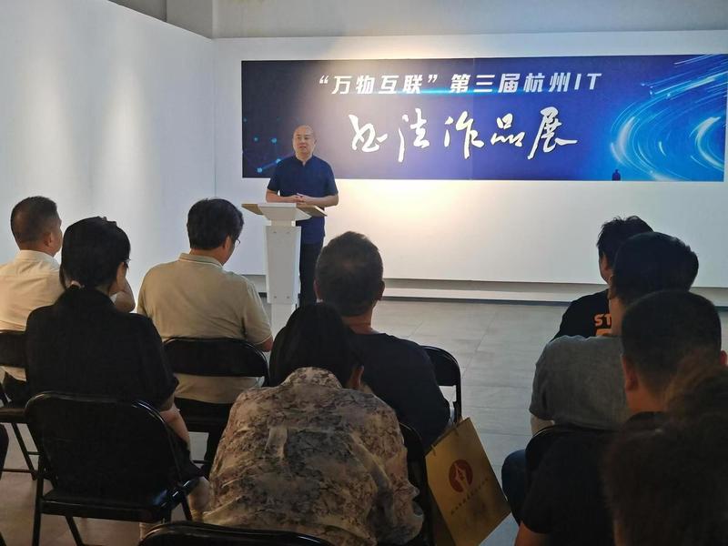 9月5日,由杭电理学院党委策展并联合杭州市文学学会、杭州市苏东坡研究会、杭州市硬笔书法家协会共同举办的“万物互联”第三届杭州市IT书法作品展在杭州影天国际艺廊开幕,展览将传统书法艺术与现代科技元素巧妙融合,为观众带来了一场别开生面的文化盛宴。杭电理学院党委书记、中国书法家协会会员、浙江省硬笔书法家协会名誉主席吴一桥,浙江省硬笔书法家协会副主席、杭州市硬笔书法家协会主席王晓斌,中国水浒学会副会长、中国三国演义学会副会长、杭州市文学学会会长、杭州市苏东坡研究会会长王益庸,中国文艺评论家协会理事、杭州市文艺评论家协会副主席杨宇全,浙江现代画院副院长、杭州市老年书画家协会副主席王建德,浙江省青年书法家协会副秘书长、杭州市硬笔书法家协会副主席潘永锋,我校校友、放鹤斋董事长、浙江省硬笔书法家协会副秘书长冼亦富等出席开幕式。