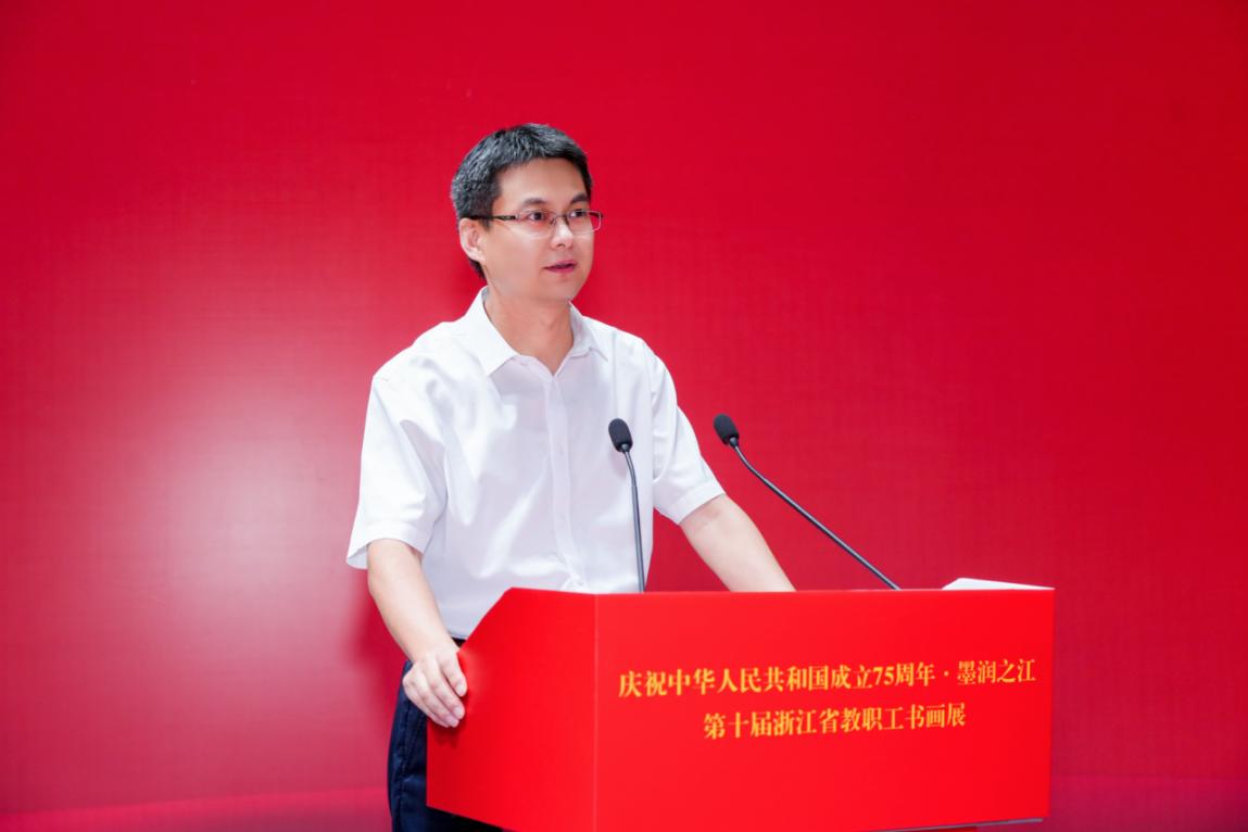 吴卿致欢迎辞,向省教育工会、省教育书法协会、省书法家协会教育委员会对学校工作的信任和支持表示感谢。他表示,学校始终坚持落实立德树人根本任务,坚持以文化人,以美浸润,把艺术文化、传统国粹融入学校党建思政和教育教学工作之中。此次书画展的举办,对弘扬中华民族优秀传统文化、促进浙江省教育系统书画艺术发展起到积极的推动作用。