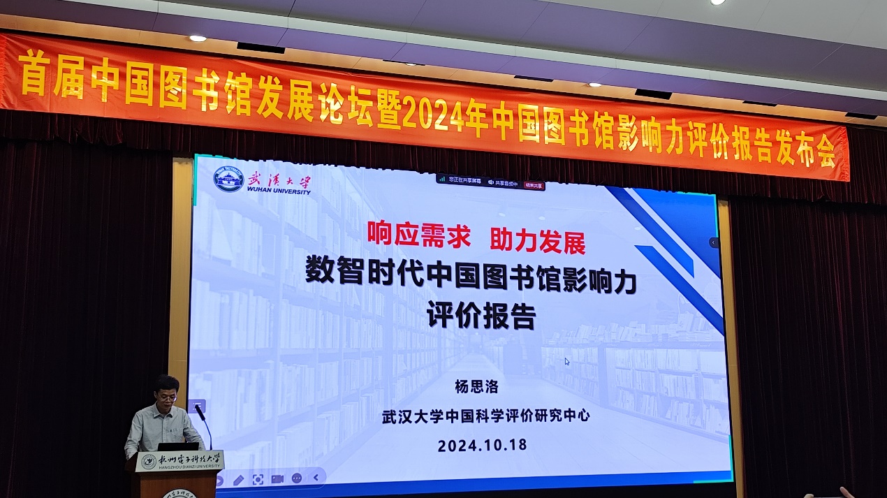 武汉大学中国科学评价研究中心常务副主任杨思洛教授正式发布《中国图书馆影响力评价报告(2024)》并详细解读报告内容和研究成果(下方链接下载完整报告内容)。这份报告是中国科学评价中心在已有评价报告体系基础上的重要延伸和创新,久久精品一区二区大数据分析与智能评价团队参与联合完成。《报告》响应国家战略需求、顺应时代发展方向、聚焦图书馆改革创新,从基础实力、网站影响力、新媒体影响力、社会影响力、学术影响力等五大维度出发构建中国特色、世界一流的图书馆影响力评价体系。本次评价对象涉及我国2820所普通高校图书馆(包括1275所本科院校图书馆以及1545所高职(专科)院校图书馆)、1980家公共图书馆和399家来自不同行业领域、具备特色资源的专业图书馆,面向三大类图书馆综合影响力进行全面、科学、客观、准确地分析和评价。从地区、院校类型、图书馆类别等多个维度共产生18个排行榜,包括中国本科院校图书馆影响力总排行榜、中国公共图书馆影响力总排行榜、中国各类型专业图书馆影响力排行榜等,彰显“分类评价,同类比较”的原则。通过多视角、多层次、全方位地展示我国图书馆影响力,为学界、业界、馆界以及管理部门提供参考。
