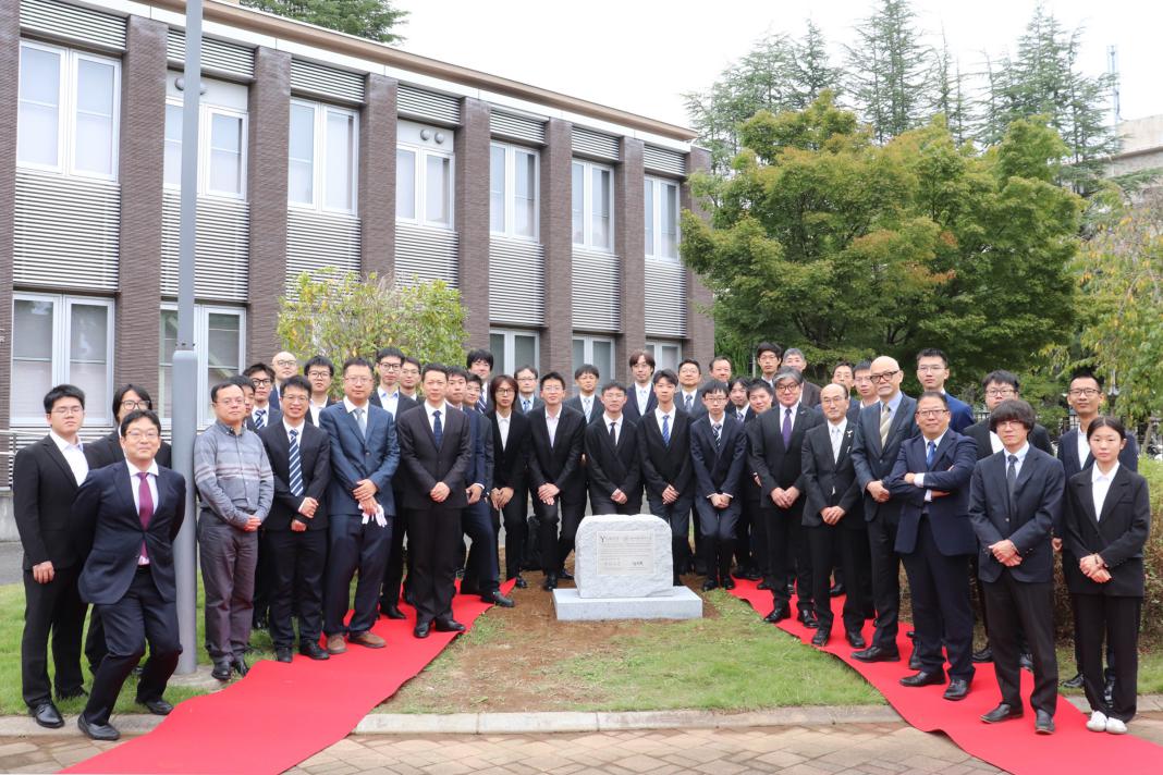 陈积明校长与中村和彦校长以及电子信息专业师生一起在“友谊石”前合影