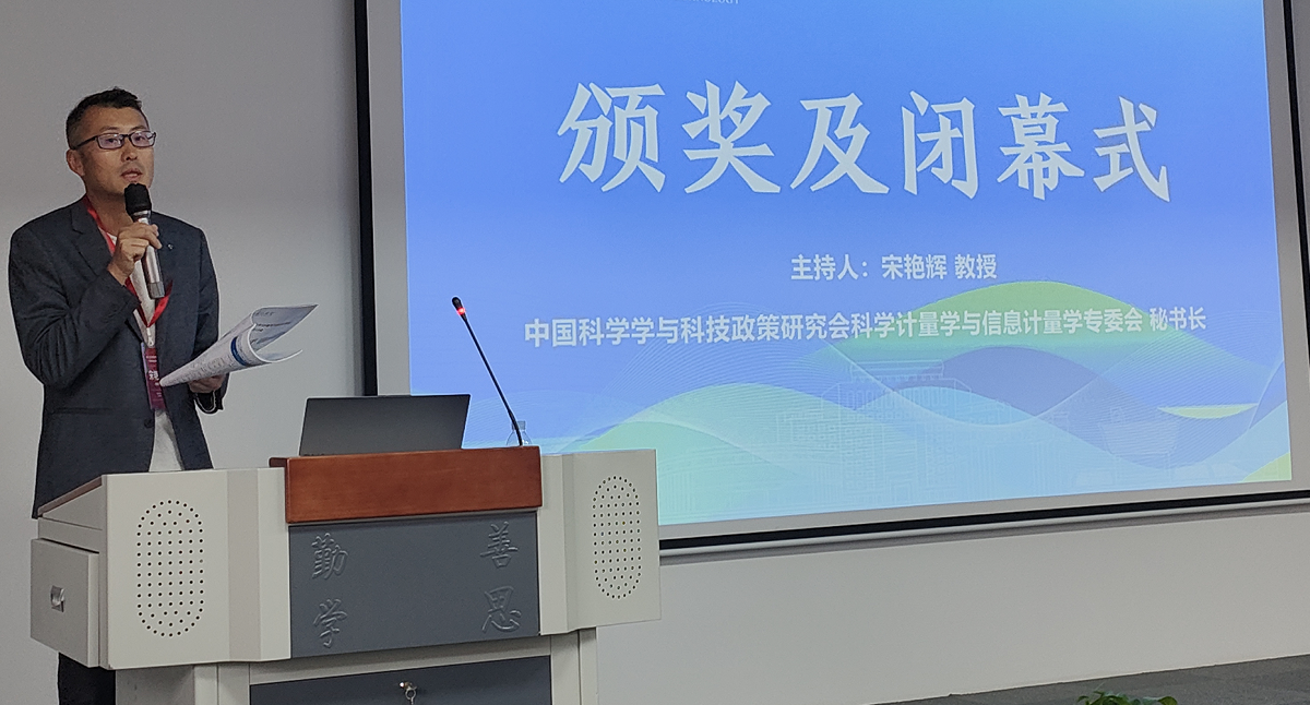 专委会秘书长宋艳辉教授主持了优秀论文颁奖暨闭幕式。余波副教授宣读了21篇优秀论文获奖名单,邱均平资深教授、张龙波教授、杨思洛教授为获奖论文颁奖。《情报科学》等期刊宣布拟录用12篇论文。