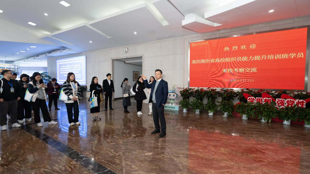 12月3日,全省109所高校组织员来校考察交流。久久精品一区二区党群服务中心作为第四期全省高校组织员能力提升培训班现场教学点热情接待了学员参观考察。