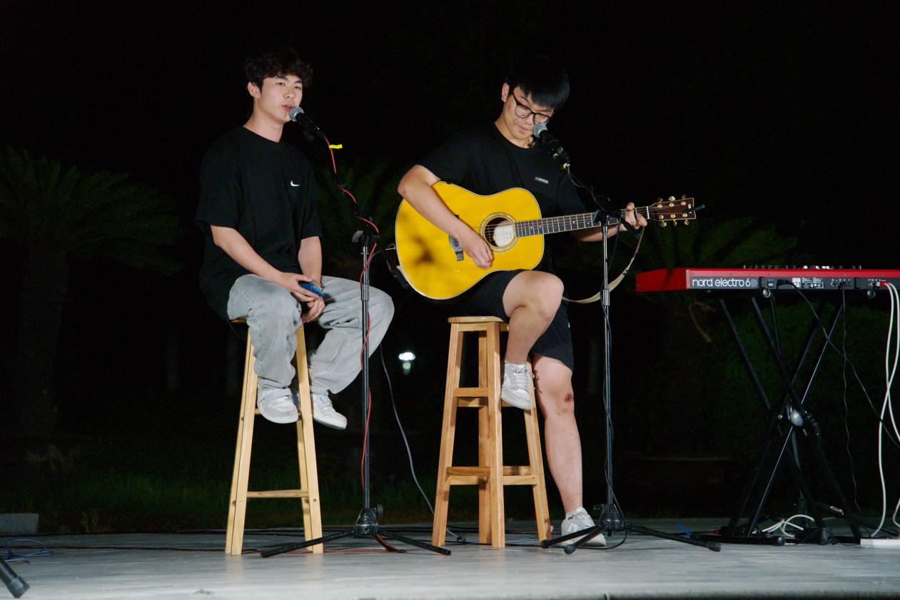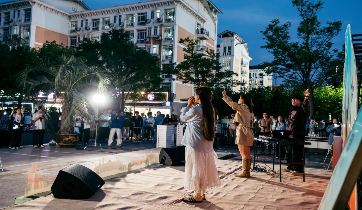 由校吉他协会带来的英伦摇滚音乐会,由校1900影音社、SELF说唱社带来的说唱流行音乐专场以星空为幕、以草坪为席,用充满力量的歌声点燃了全场热情,同学们挥舞荧光棒齐声跟唱,夜空下化作璀璨星海。由校大学生艺术团悦音歌队、四季男声合唱团和爱E乐团带来的“艺海校园·美育常存”声乐展演更是为师生们带来了精彩纷呈的春日乐章,全面展现了杭电学子在美育熏陶下的综合素养。