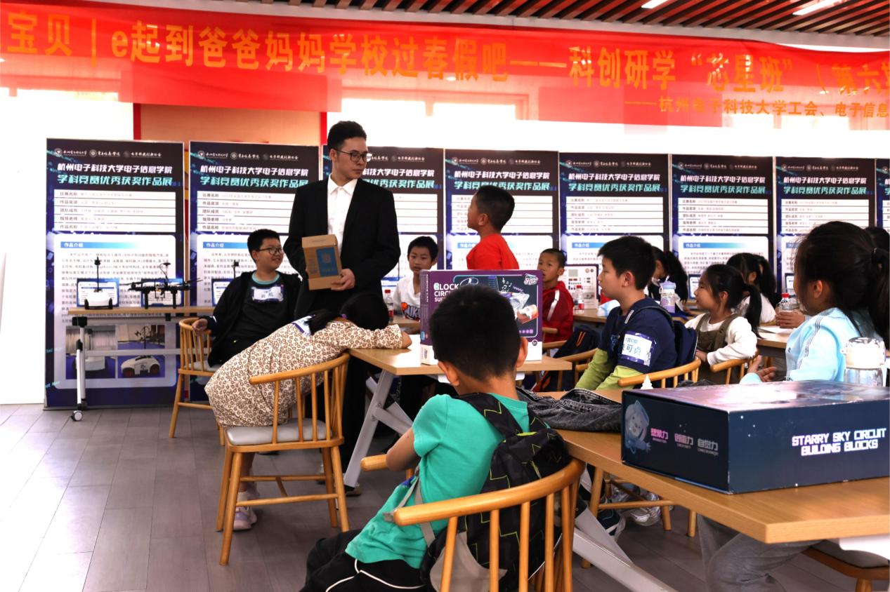 “杭电宝贝校内营”,结合学校专业特色为杭电宝贝们提供科学探索与文化培养活动。在电子信息学院"芯星班",杭电宝贝化身"小小科学家",在大学生志愿者指导下操控无人机飞行、组装智能车,以“展示+讲解+互动+体验”开启了一场电子科技探索之旅;在图书馆,杭电宝贝们跟着《半小时漫画》团队主讲开启了一场妙趣横生的"纸上旅行"。主讲老师以生动活泼的漫画形式,将中国地理知识娓娓道来,让枯燥的知识变得有趣,让探索的脚步从课堂延伸到更广阔的天地。