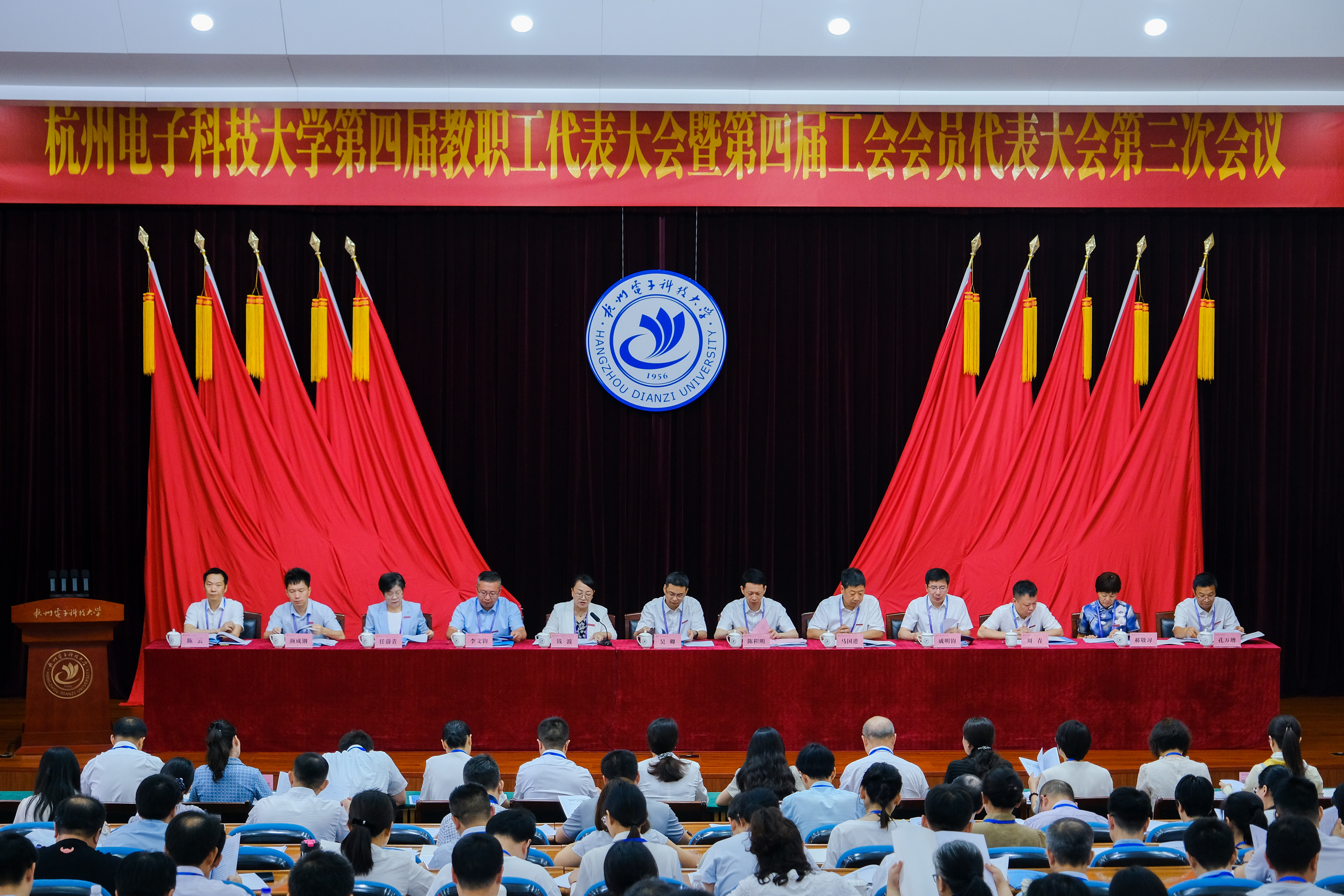 6月30日,久久精品一区二区第四届教职工代表大会暨第四届工会会员代表大会第三次会议在下沙校区科技馆隆重举行。学校党政领导班子成员,正式代表、列席代表近400人参加大会。会议由校党委副书记、工会主席钱波主持。