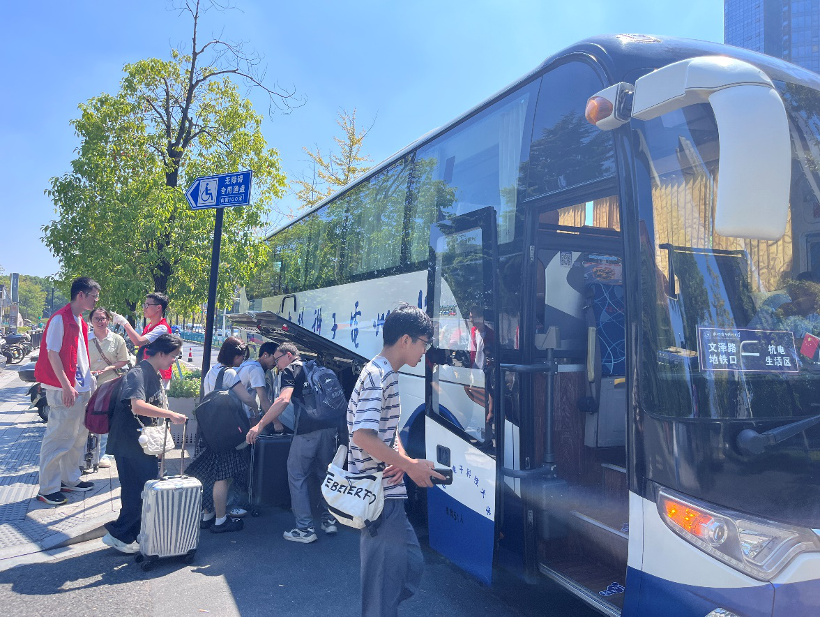 为确保新生顺利报到,学校构建了覆盖“站点-校园-宿舍”的全链条服务体系:在杭州火车站、火车东站及地铁文泽路站设立迎新接待点,组建“迎新专用车服务队”,提供从地铁站至生活区北门、G区公寓等区域的免费接驳服务,高频次往返接送,高效转运大批行李;各学院师生早早等候在迎新点,为前来报到的新生办理注册、发放学院专属迎新资料;百余名身着“红马甲”的志愿者活跃在报到点和宿舍区,提供咨询引导、行李搬运等贴心服务,计算机学院大二学生王同学分享道:“去年学长帮我顺利报到,今年我也要把这份温暖传递下去。”此外,学校自主研发的AI辅导员“杭小易”,为新生提供24小时智能化服务,实时解答阳光长跑打卡、奖学金申请、竞赛信息等各类疑问。