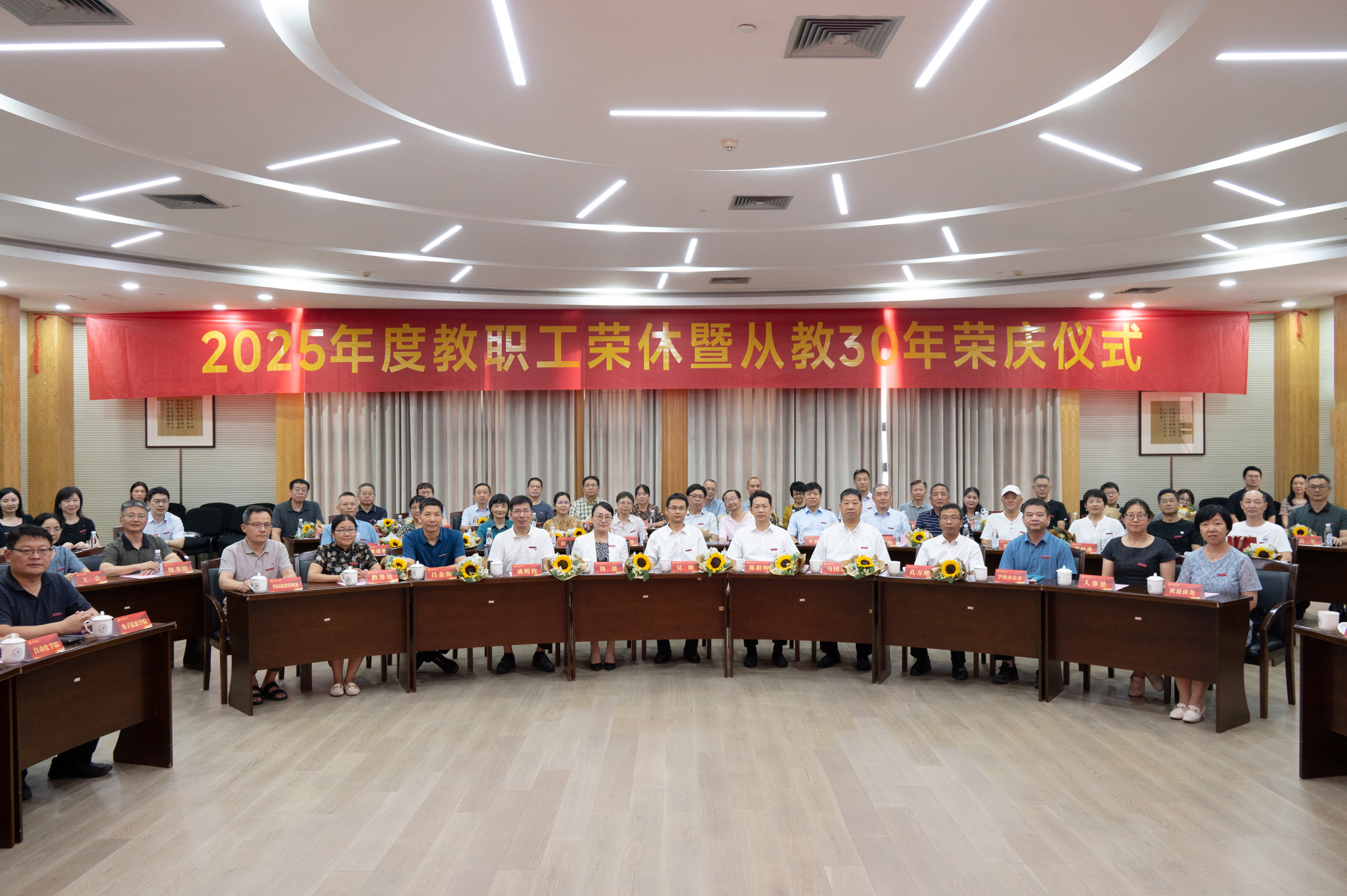 在第41个教师节即将到来之际,9月9日下午,我校在科技馆二楼扇形会议室举行2025年度教职工荣休暨从教30年教职工荣庆仪式。校党委书记吴卿、校长陈积明、党委副书记钱波、副校长马国进、党委副书记戚明钧,校党委委员、组织部部长孔万增出席仪式。2025年退休教职工代表、从教30年教师代表,相关部门负责人及各二级党组织主要负责人参加仪式。仪式由副校长马国进主持。