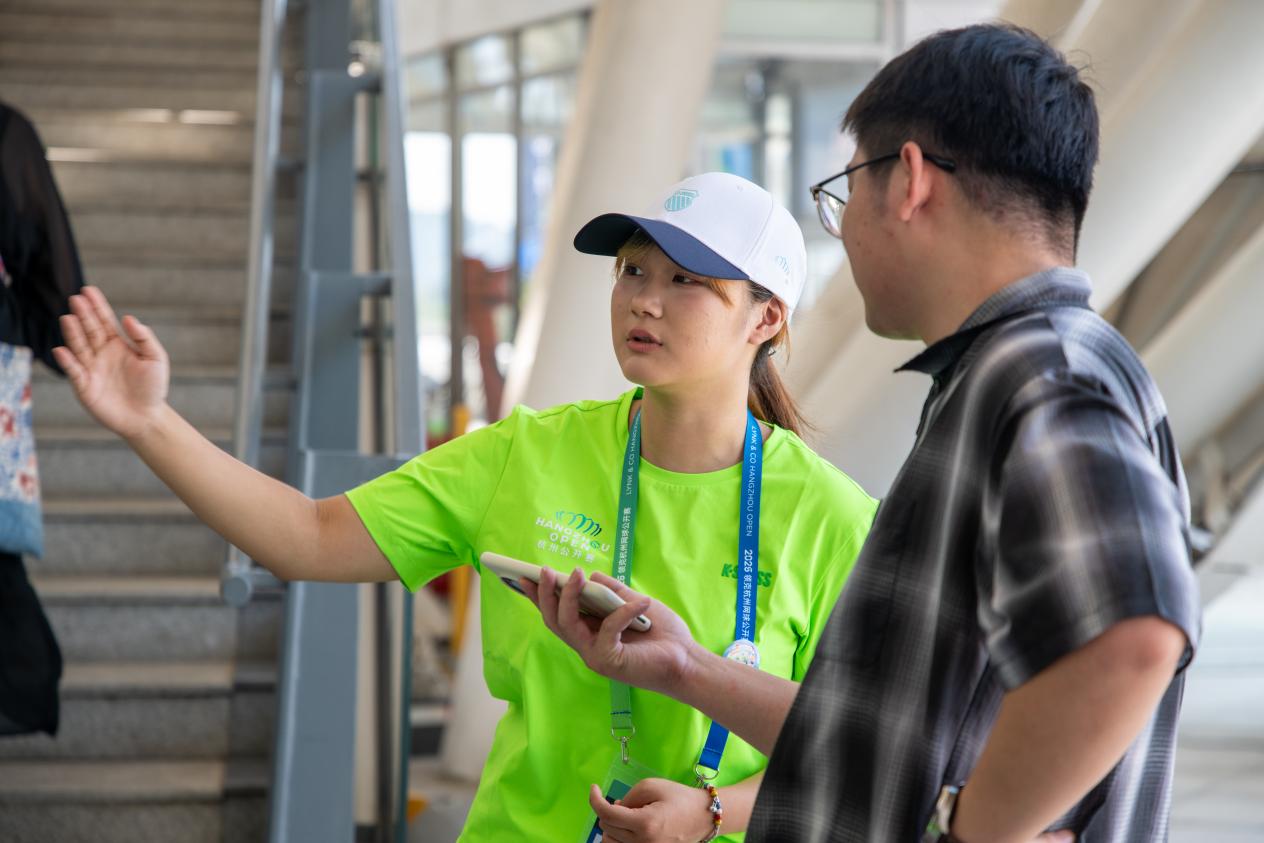 杭州网球公开赛盛宴开锣,杭电小青荷志愿护航“小莲花”