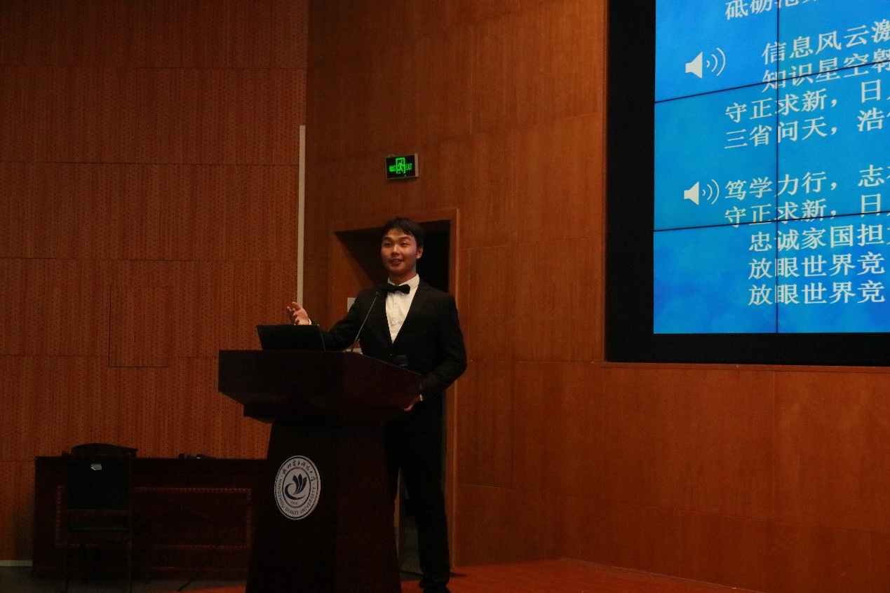校歌教唱环节中,四季男声合唱团带领新生逐字研读校歌歌词,引导大家领悟“笃学力行守正求新”的校训精神;随后通过打拍子、分句哼唱等互动方式,帮助新生攻克节奏把控与音准校准等难点。从最初的生涩生疏,到后来的流畅进行,教学现场数百名新生歌声整齐划一、激情昂扬,校歌的旋律久久回荡。