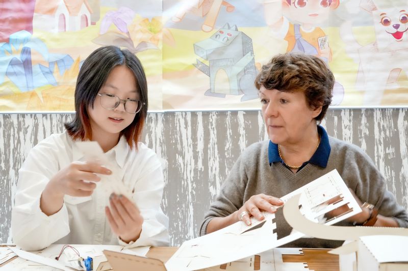 最打动贝尔纳博的是,教室里女孩成了主角。女性好参与的传帮带模式,让她连连称赞:“这是女性力量的代际接力!”她现场体验折纸编程,笑称“感觉自己也变年轻了”。“这不仅是一堂课,更是一扇门。”她说,“它为乡村孩子,尤其是女孩,打开了通往科技世界的大门。”